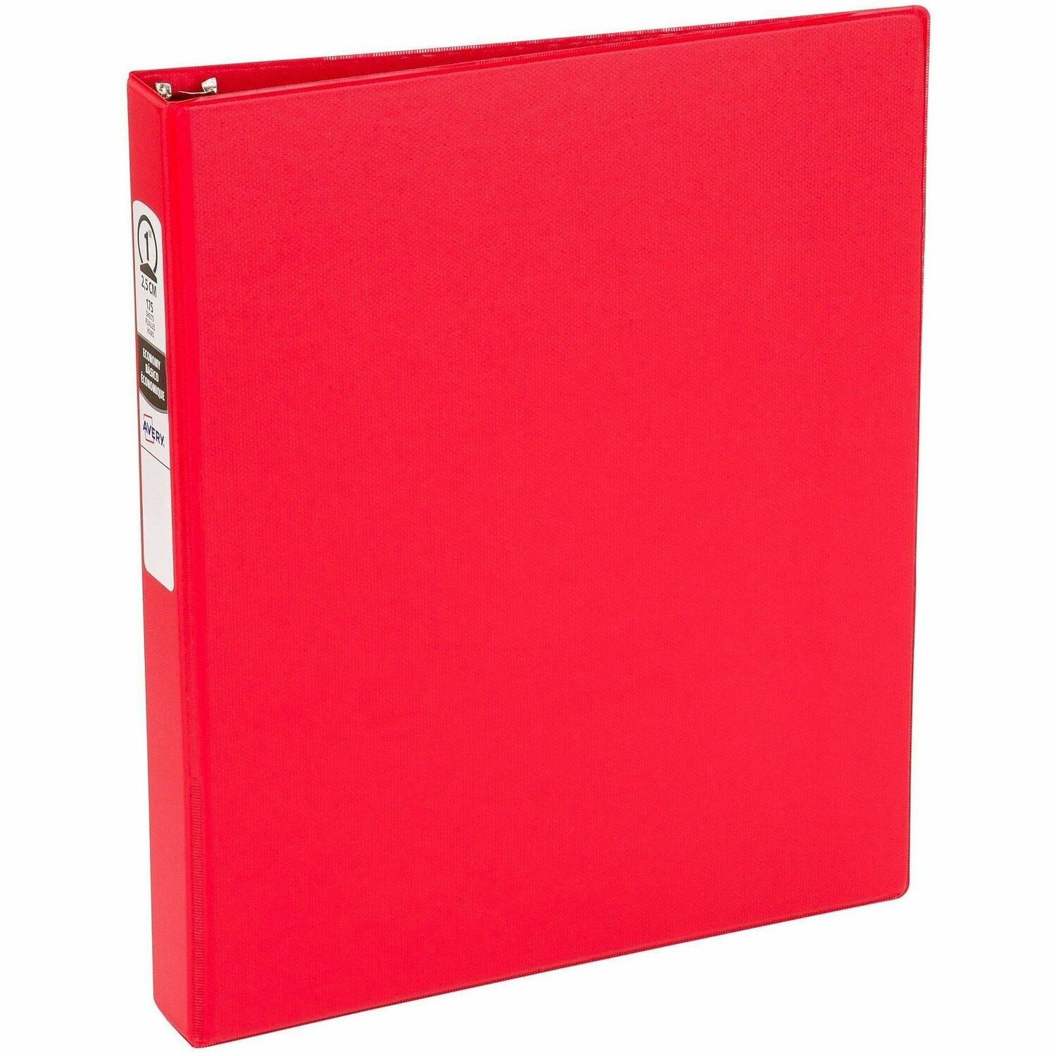 1" Binder Capacity - Letter - 8 1/2" x 11" Sheet Size - 175 Sheet Capacity - 3 Ring - Fastener: Round Ring - Pocket: 2, Internal - Vinyl - Red - Recycled - Non Locking Mechanism - 1 Each