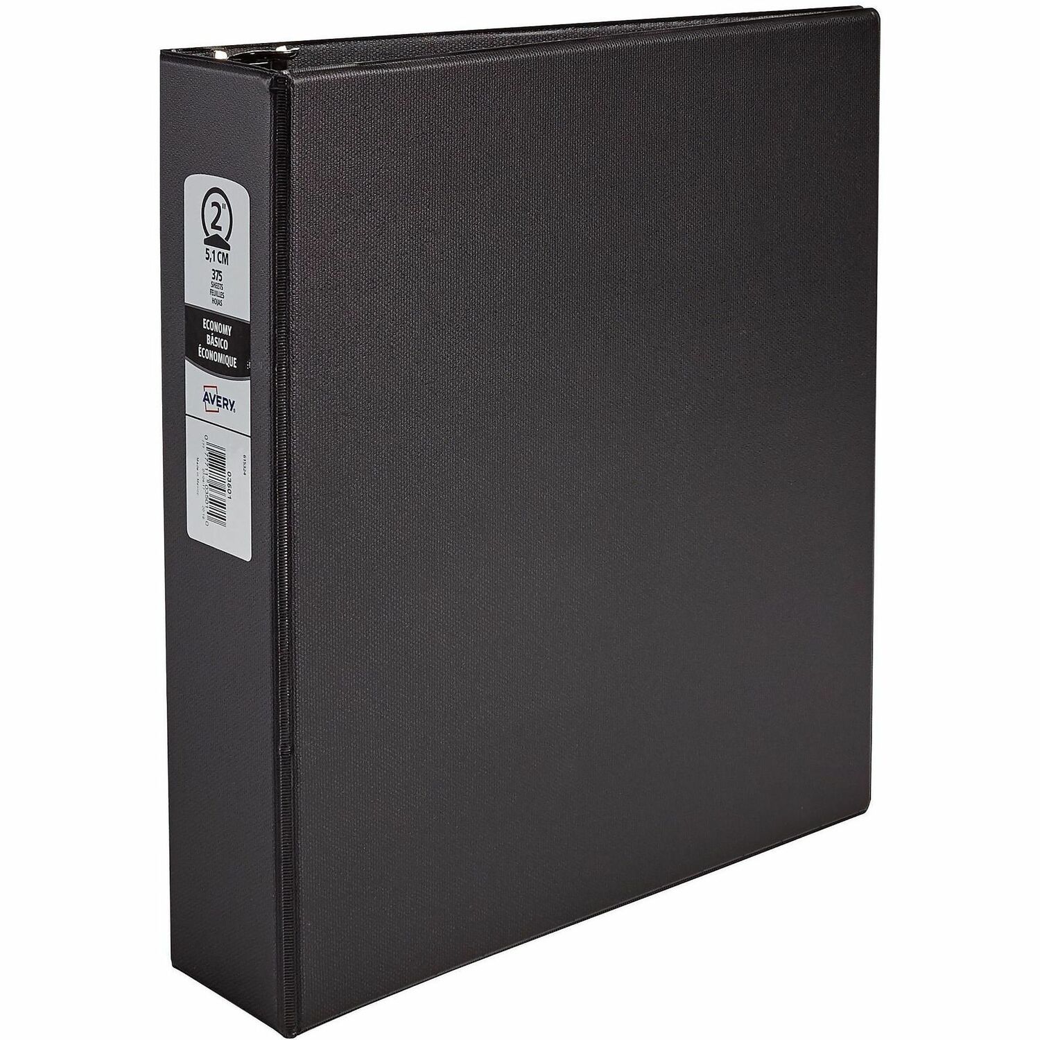For convenient organization of your documents, it doesn't get much simpler than this handy Economy Binder. Metal round rings mounted on the spine hold your letter-size papers securely in place to let you flip through notes, reports and more without getting your pages out of order. Binder is ideal for your class notes, employee handbooks and other important papers. 2" ring capacity holds up to approximately 375 sheets. Slip loose pages into the two interior pockets for easy access later. Each pocket holds up to 20 sheets. The matte cover and spine combine with a matte interior to reduce glare. Binder also features concealed rivets for a professional appearance, vinyl construction and a sturdy chipboard core.
