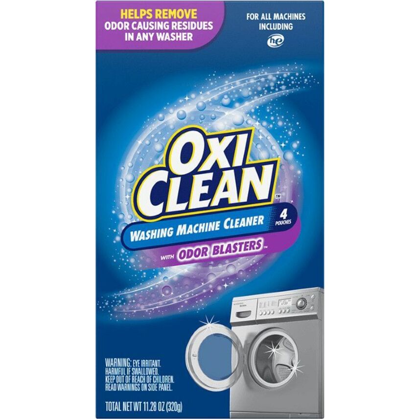 OxiClean Washing Machine Cleaner with Odor Blasters helps remove odor-causing residues in any washer. Cleanser is septic-safe, phosphate-free and safe for use in both High-Efficiency (HE) and standard washing machines. To use, simply remove all clothing, pour one pouch into the washing drum (no laundry detergent), initiate a 'Clean Washer' cycle (or a normal cycle with hot water) and wipe remaining residue with a towel. Use one pouch a week for three weeks, then continue using one pouch per month for maintenance.