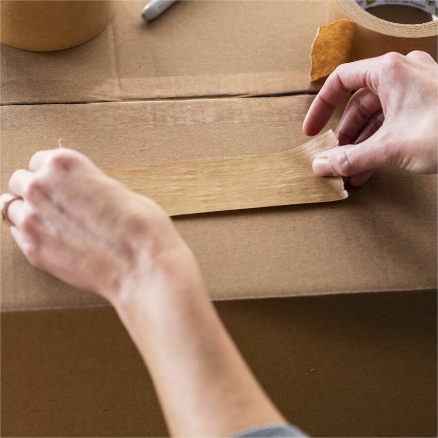 EZ Tear Paper Tape is a frustration-free solution to difficult-to-cut packing tape. Unroll tape to desired length and tear by hand - no scissors or dispenser needed. Versatile, rubber-based adhesive effectively sticks to multiple surfaces in a wide range of temperatures. Kraft-paper backing allows flexibility during application while high tensile strength ensures no tears or breaks. Reuse boxes again and again by using paper tape as a shipping label. Simply tape over old labels and write directly on paper tape using a pen or maker.