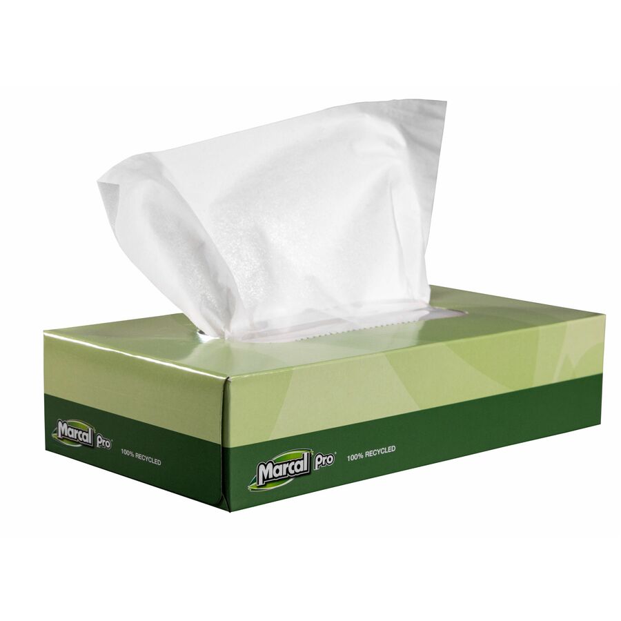 Recycled, two-ply Facial Tissues easily dispense from convenient, flat pop-up boxes. Soft-yet-absorbent and virtually lint-free, these hypoallergenic tissues are whitened without chemicals containing chlorine bleach. Tissues also have no added dyes or fragrances. Use at home or in office, hospitality or healthcare environments.