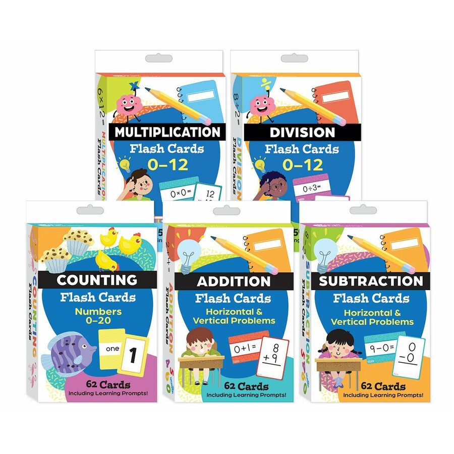 Help children develop strong foundational math skills with this 5-deck flashcard bundle. Designed for students in Grades K-5, this all-in-one set covers essential concepts from counting to division, providing over 400 math problems that grow with the learner. Whether at home, in the classroom, during tutoring sessions, or on the go, these flashcards offer a dynamic way to practice and retain key math facts while keeping learning exciting and interactive.