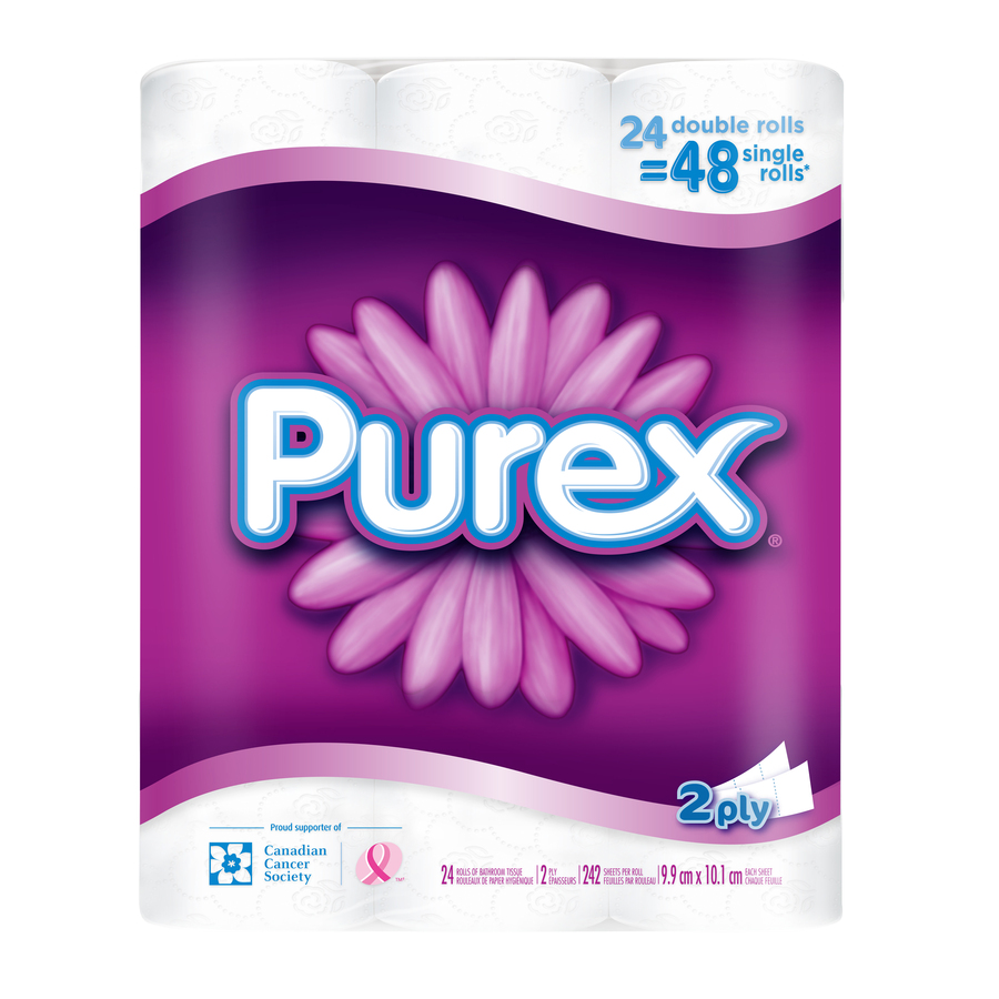 High quality bathroom tissue that provides Pure Comfort Available from Manitoba to the West Coast only. Two-ply. 253 sheets per roll. White. 24 rolls/pkg.
