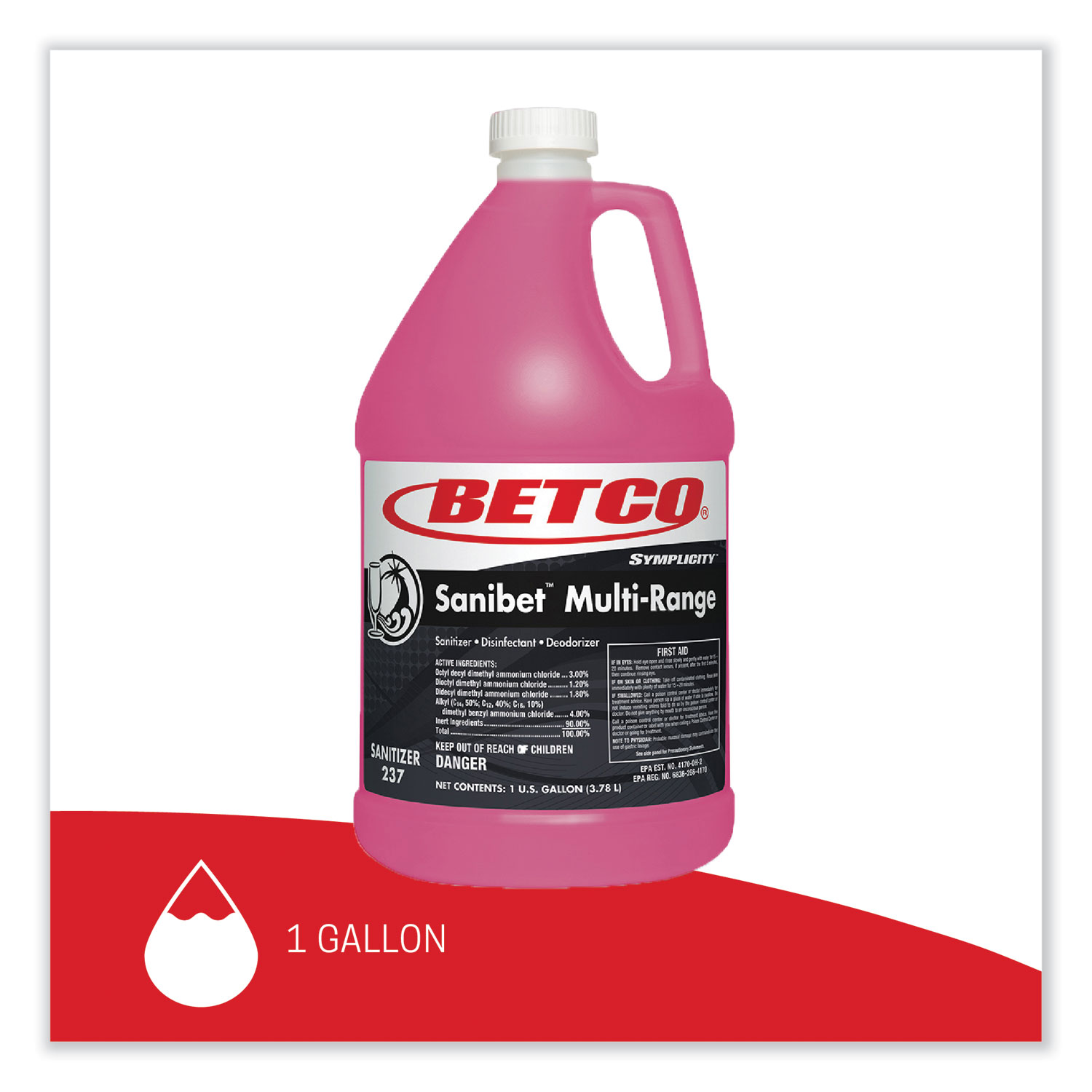 Symplicity Sanibet Multi- Range Sanitizer Disinfectant Deodorizer, 1 gal Bottle, 4/ Carton