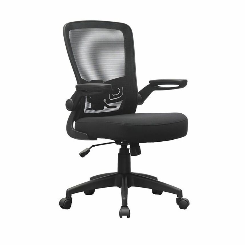 Flip Arm Mesh Back Task Chair is ergonomically designed to prioritize comfort and convenience. Backrest is made with horizontal mesh for breathability. Foam-padded seat is covered in soft-touch fabric for added comfort. Chair incorporates a spring-tilt mechanism with a pneumatic gas lift for effortless height-adjustment and an upright locking position. Customize the tilt tension using the knob to achieve your preferred setting. Chair is equipped with flip-up arms for easy maneuverability and supports up to 275 lb.