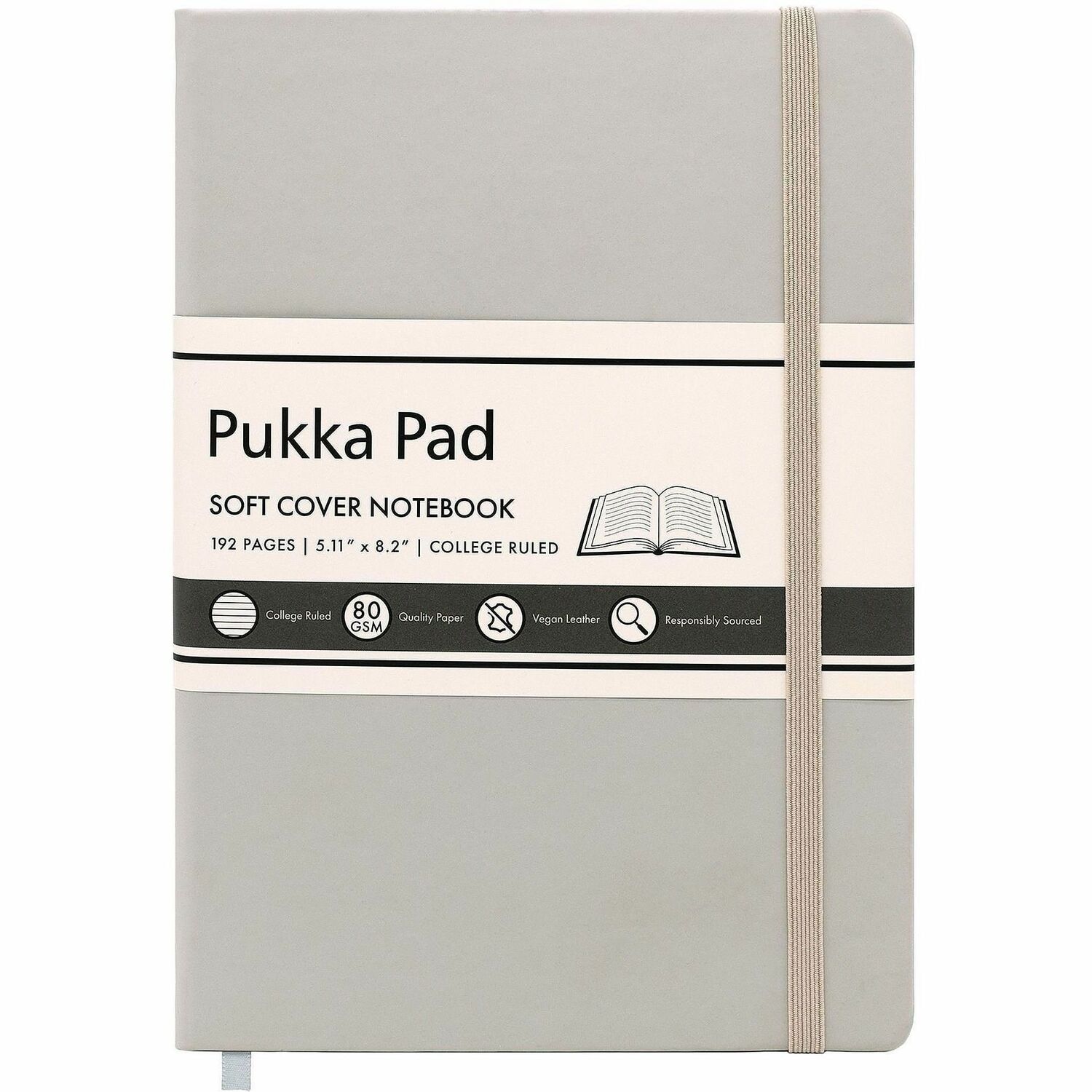 1 Subject(s) - 96 Sheets - 192 Pages - Casebound/Sewn - College Ruled Front Ruling - Ruled Margin - 80 g/m² Grammage - A5 - 5 7/64" x 8 1/5" Sheet Size - Cream Paper - Oatmeal Vegan Leather Cover - Soft Cover, Note Section, Undated, Pocket, Acid-free Paper, Expandable Pocket, Elastic Closure - 1 Each