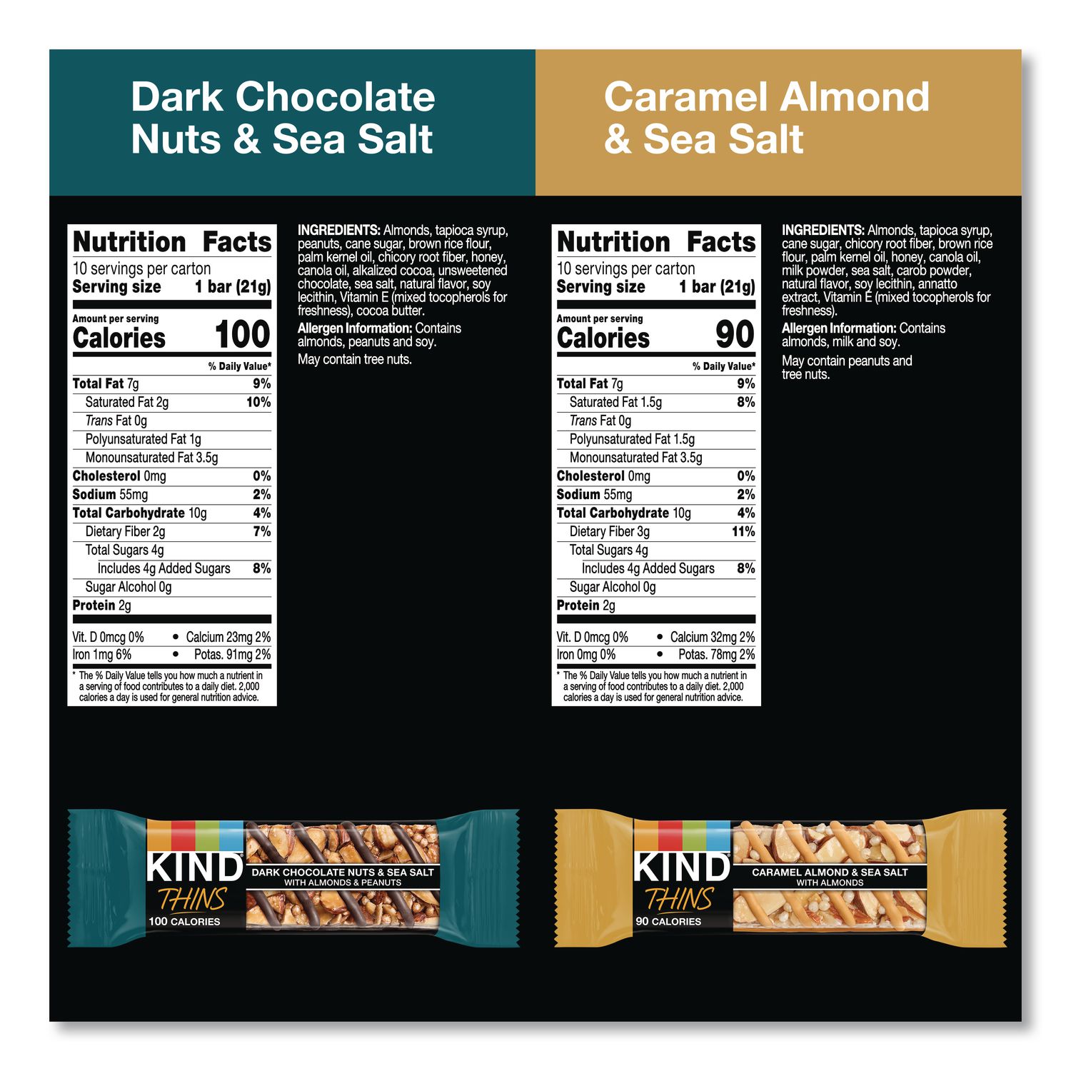 Thins Dark Chocolate Nuts and Sea Salt/ Caramel Almond and Sea Salt Variety Pack, 0.74 oz Bar, 20/ Box