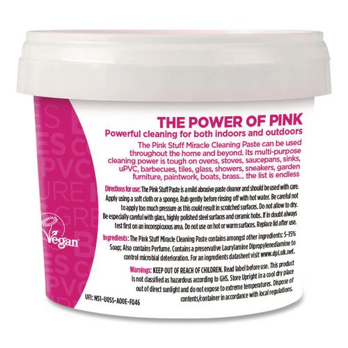 The Pink Stuff Miracle Cleaning Paste is a mild-abrasive, multipurpose paste cleaner that works instantly on all kinds of tough and dirty surface stains. Millions of people have been turning to this versatile cleaning paste for all sorts of household cleaning needs, trusting its power to make indoor and outdoor areas extra shiny, sparkly and squeaky clean. It is amazing on tough stains, with endless usages and can be used on anything that will not scratch. It revives the dirtiest and saddest of looking items back to an incredible clean condition and leaves surfaces satisfyingly clean and shiny. It is great for cooktops, ovens, pans, burnt food, black marks, baseboards, window frames, outdoor furniture, rusty radiators, watermarks, glass, shoes and more. Saving you time, space and money, this world-famous vegan product made with natural cruelty-free ingredients lasts way longer than any other cleaning agent and has a fresh scent you and your whole family will love. It is easy to use, simply use a small amount on a damp cloth or your chosen cleaning implement, rub the area gently, and wash away with clean hot water.